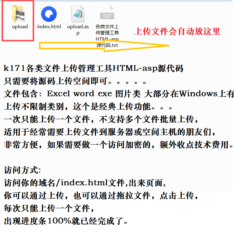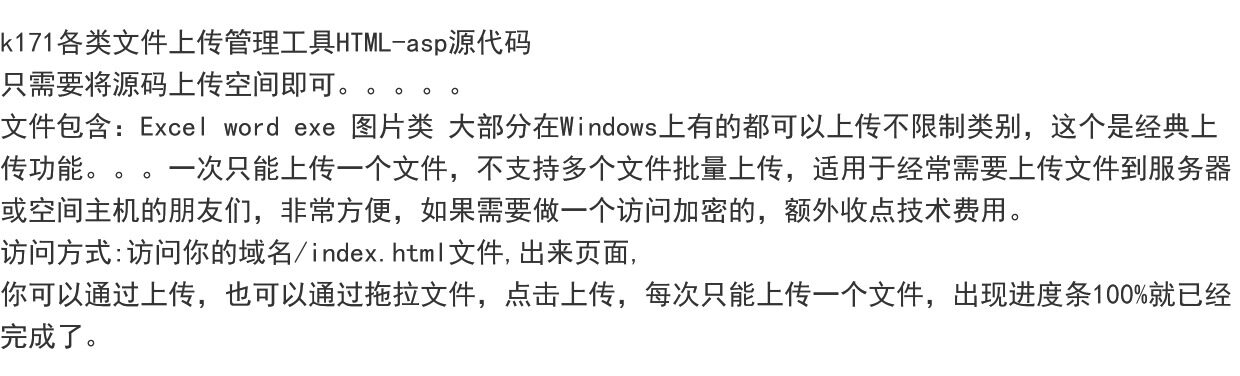k171无组件大文件单个上传不限种类格式大小容量上传HTMLasp源码