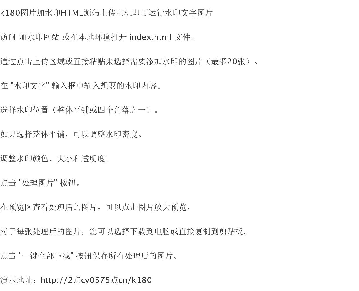 k180图片加水印HTML源码上传主机即可运行水印文字图片