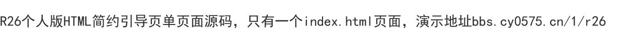 R26个人版HTML简约引导页单页面源码,只有一个index.html页面,演示地址bbs.cy0575.cn/1/r26